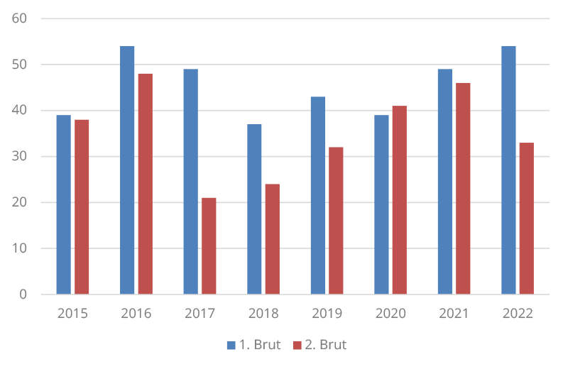 Die erfreulichen Zahlen der ersten Brut haben sich heuer sehr positiv auf das Gesamtergebnis 2022 ausgewirkt. Leider kam es zu einem größeren Einbruch bei der zweiten Brut. Viele Nester blieben unbesetzt. Zu einer dritten Brut der Stadtschwalben ist es dieses Jahr ebenfalls nicht gekommen.